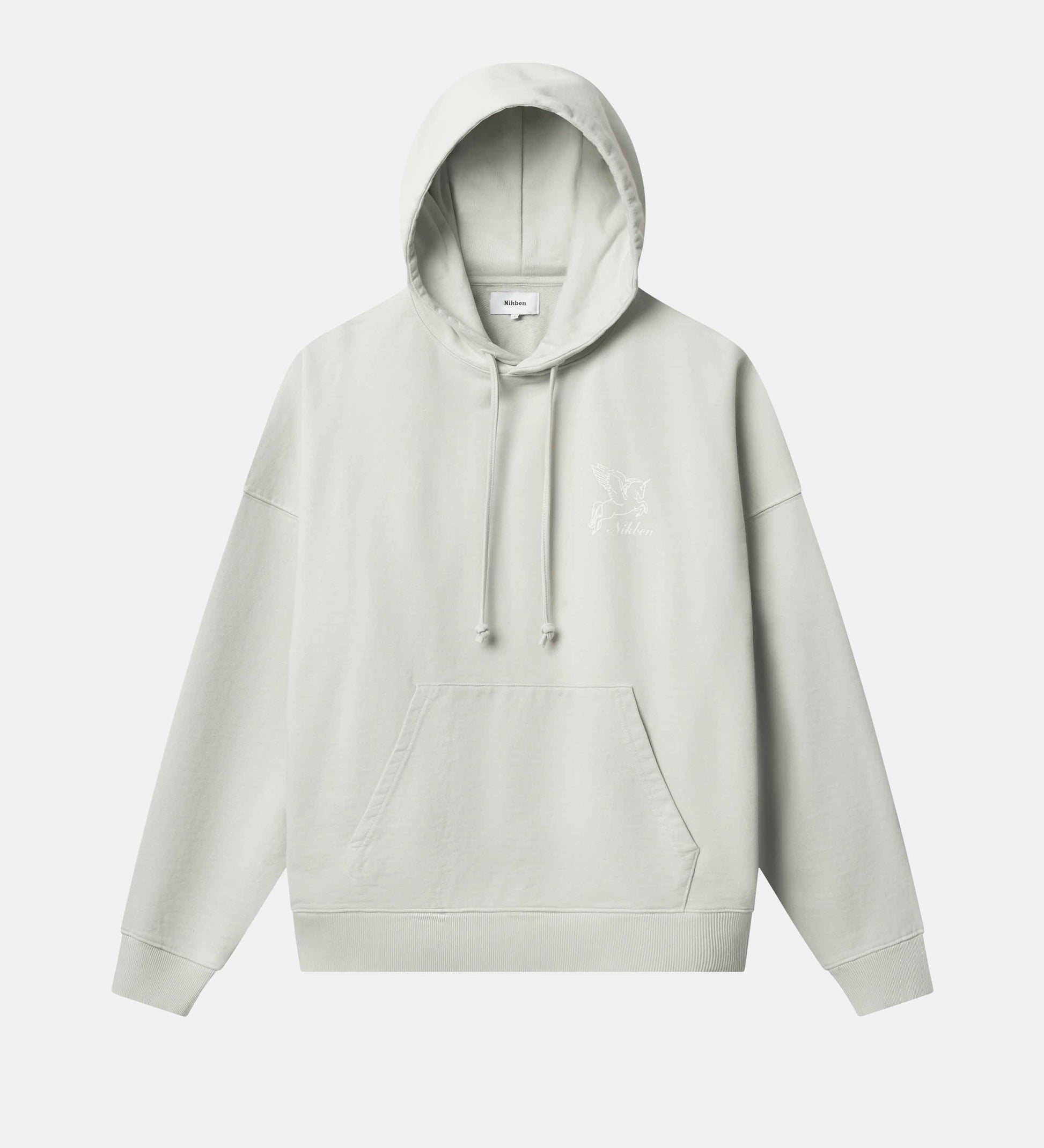 Fantasy Hoodie är tillverkad av 100 % ekologisk bomull för en mjuk och exklusiv känsla. Med en flygande enhörning och Nikben-logotyp på bröstet oc J'ADORE NIKBEN-bokstäver på ryggen är den ett iögonfallande plagg som blandar lekfull grafik med klassisk komfort.
